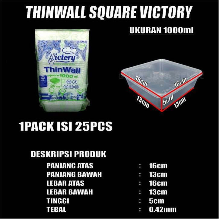 ( HARGA PROMO ) Thinwall SQ Tebal 1000ml 1500ml 2000ml 3000ml Victory /Pack Kotak Makanan Plastik Persegi Square JSP