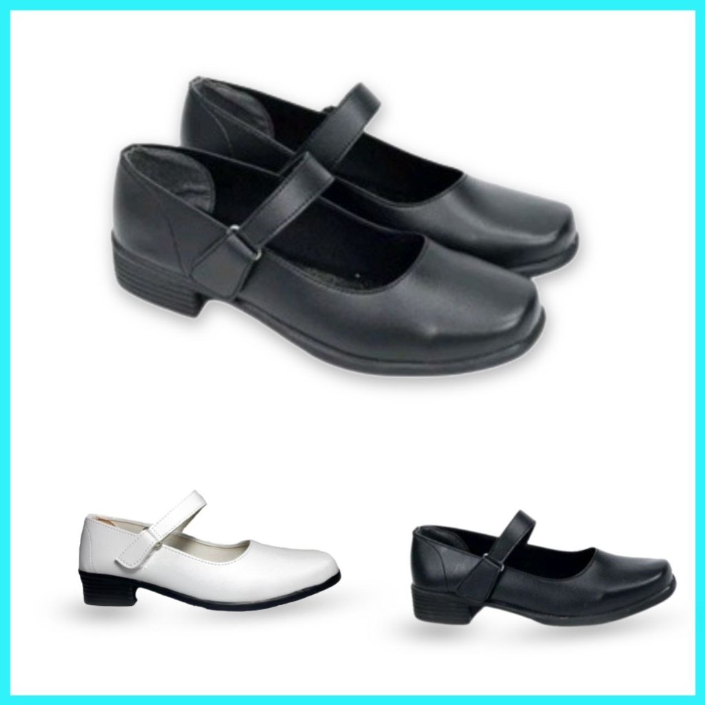 Sepatu Kasilna Pantofel Paskibra Wanita Sekolah SD SMP SMA Hak 3 cm Hitam Putih 37 - 41