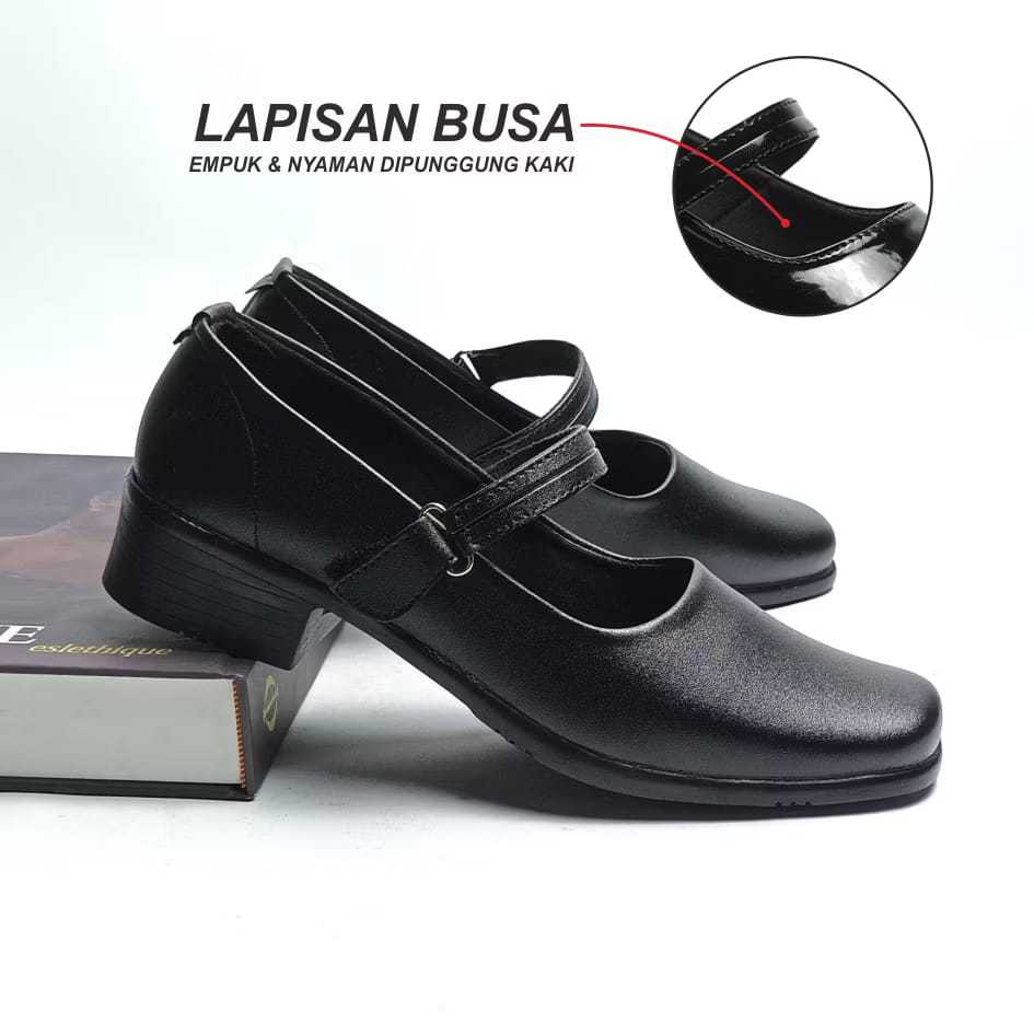 BATA - Sepatu Wanita Paskibraka Original Sepatu Pantofel BATA Sekolah Kerja Hitam Wanita Heels 3cm