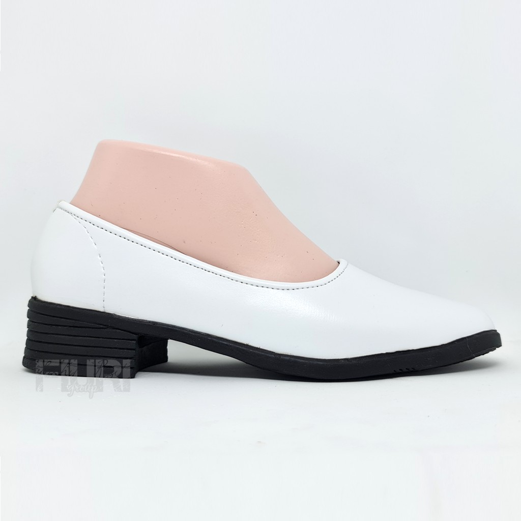 FIURI - SEPATU PANTOFEL WANITA HITAM PUTIH 36-43 POLOS SLIP ON HAK 3CM - SEPATU SEKOLAH PERAWAT SUSTER BIDAN PASKIB HAK