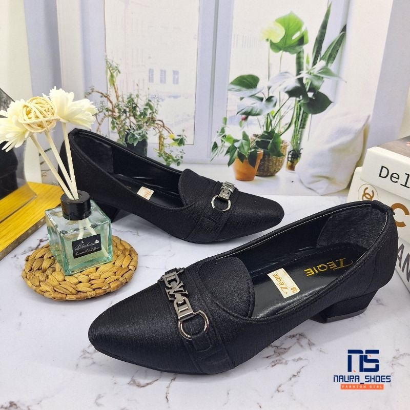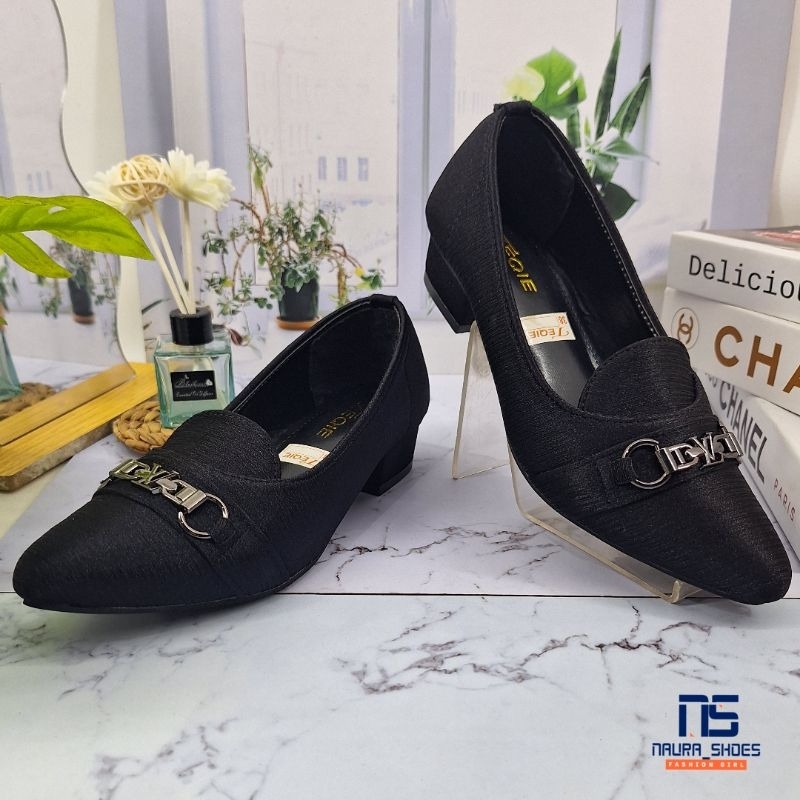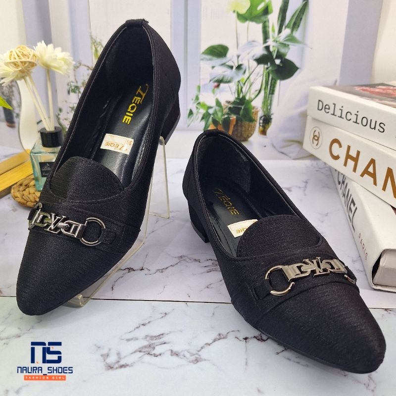 NAURA SHOES Sandal Dan Sepatu Wanita Dewasa ZASKIA R26 Pantofel Slip On Balet Kerja Kantoran Hitam Hak 3cm Kekinian Terb