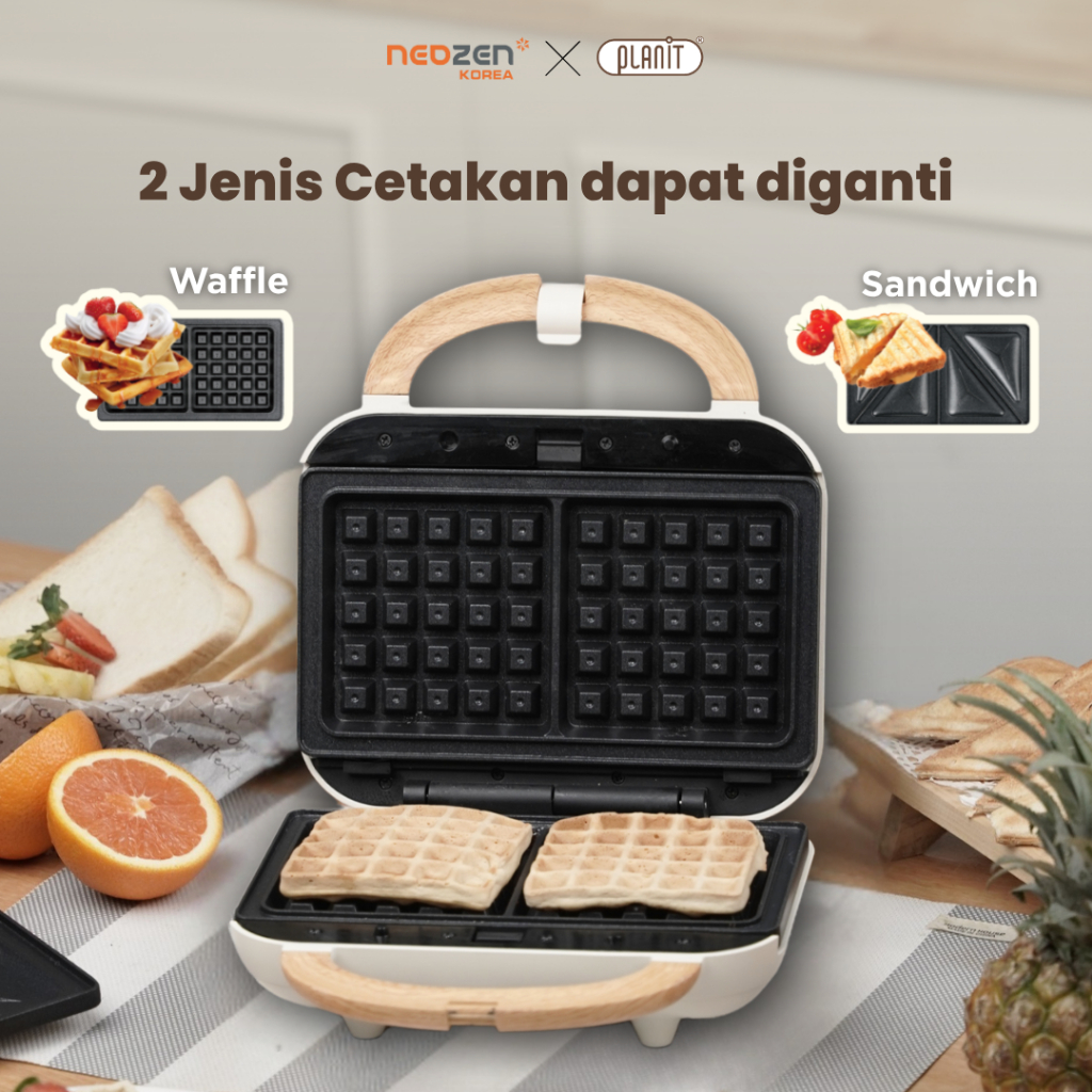 PLANIT WAFFLE & SANDWICH MAKER MULTIFUNGSI 2 IN 1 LOW WATT - ALAT PEMBUAT WAFFLE CROFFLE