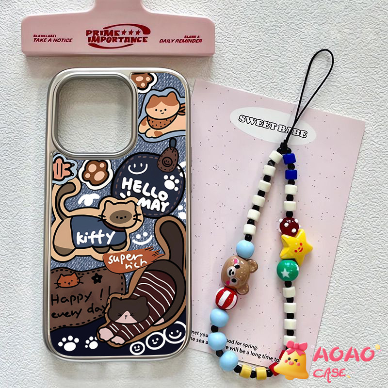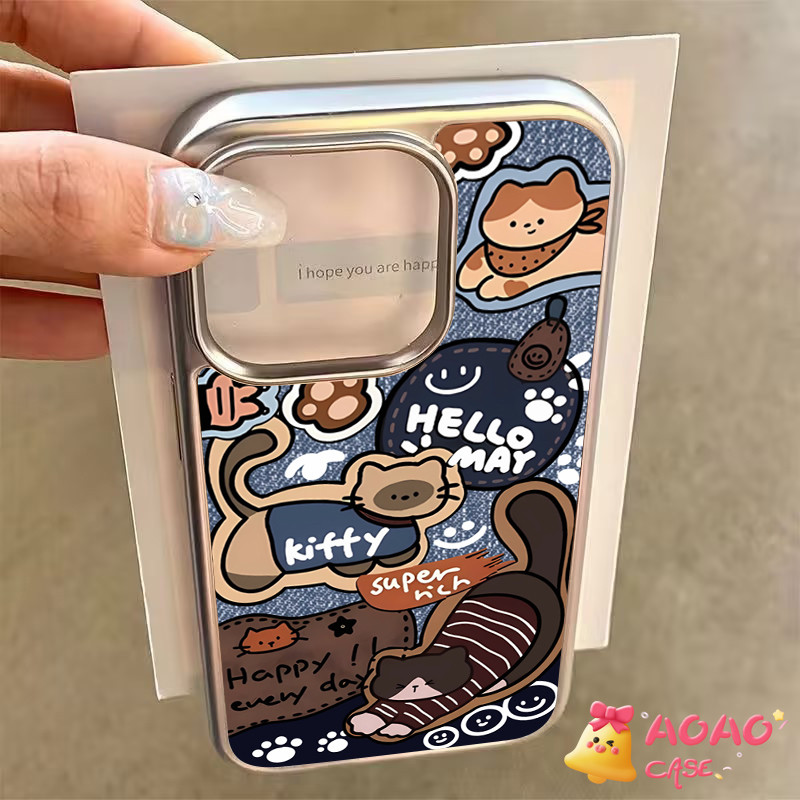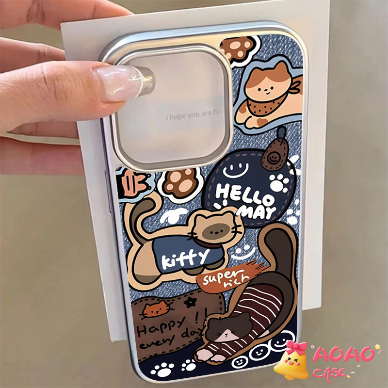 Case HP Untuk IPhone 7Plus 11 13 15 14 12 Pro Max 8Plus XR 7 8 Plus X XS MAX SE 2020 Kartun Cantik Koboi Kucing Koboi Ku