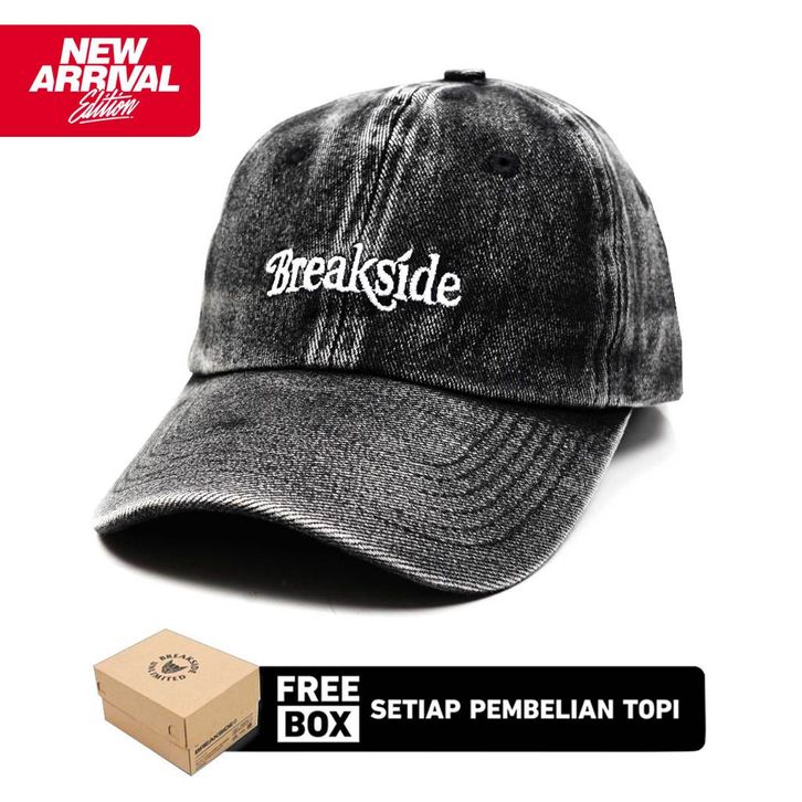 FREE BOX Breakside Polo Cap Denim Praisel - Black Topi Pria Washed BY ORIGINAL PRODUCT