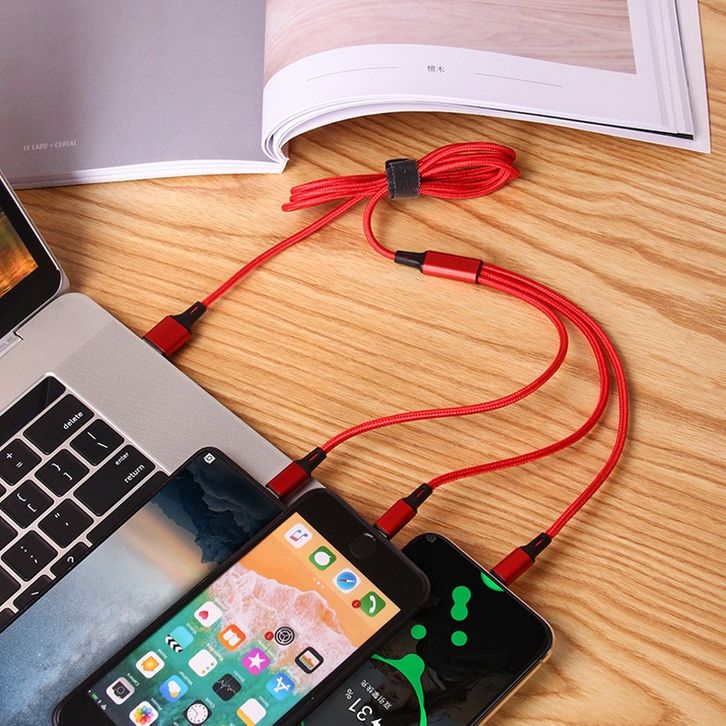 PixEILink 3.0A 1.2M Nylon Braided Cable kabel data 3 in 1 Fast Charging