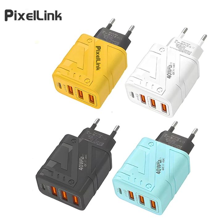 PixEILink Adaptor Charger fast charging Casan USB Type C Kepala Charger 40W Charger 3 Port Usb