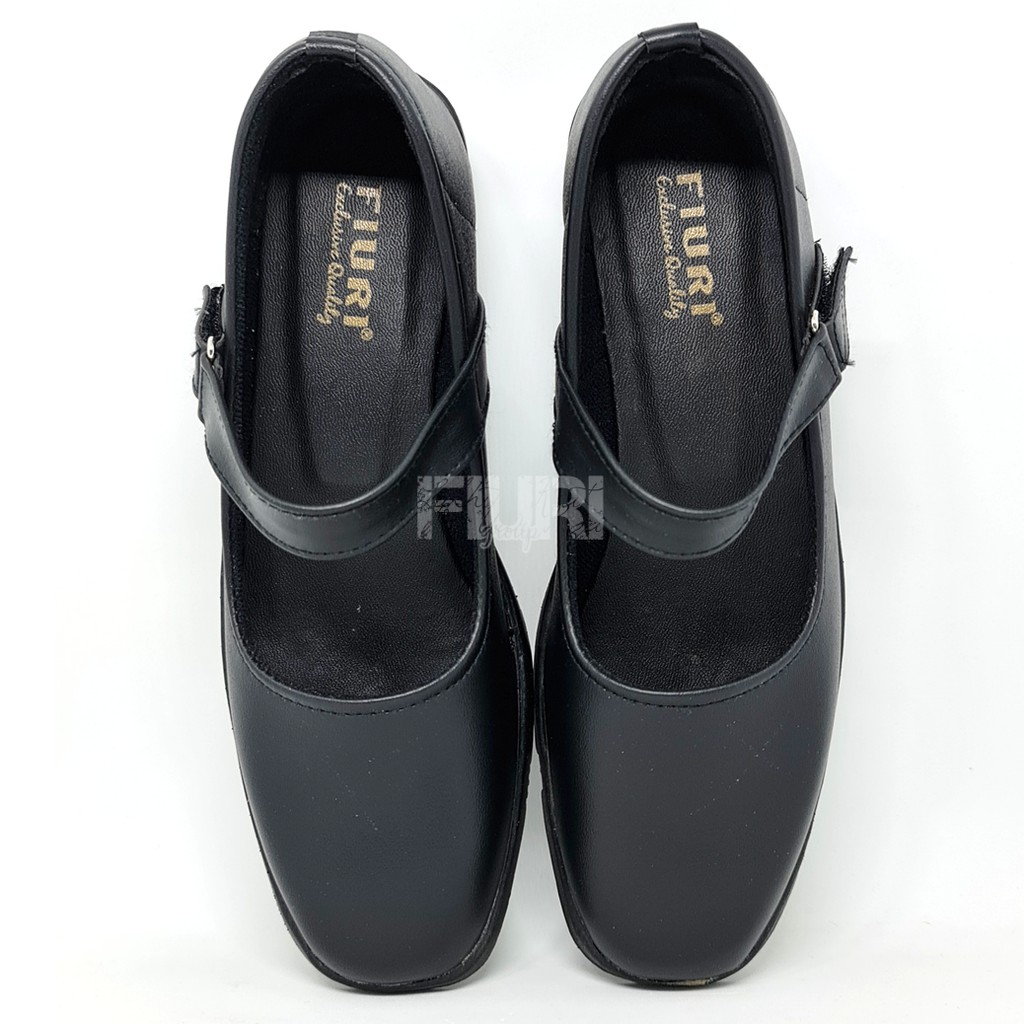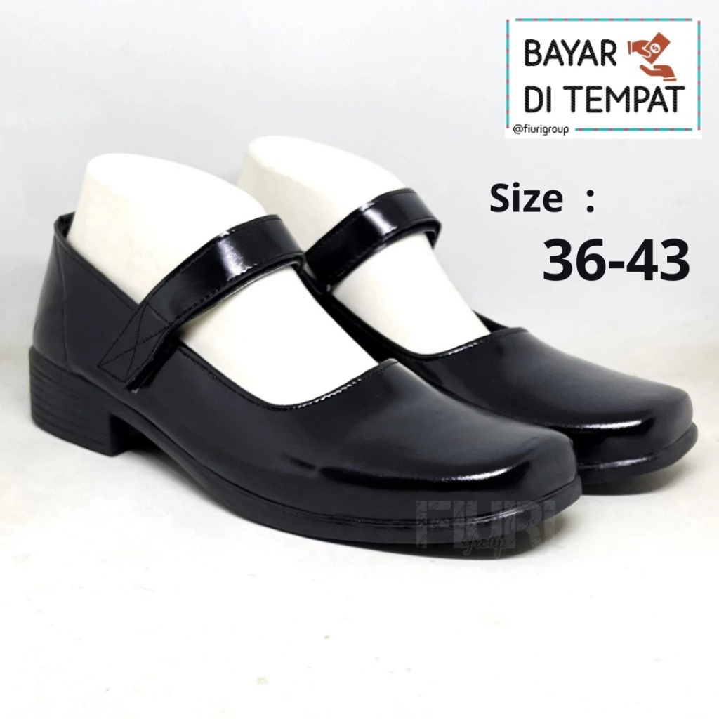 FIURI - SEPATU PANTOFEL SLIP ON HAK 3CM WANITA HITAM 36-43 BERTALI - SEPATU SEKOLAH WARNA HITAM PUTIH UPARA PASKIBRA