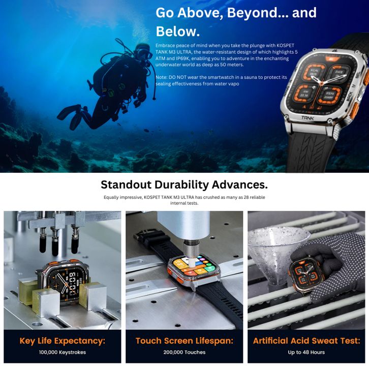 Kospet Tank M3 Ultra Bluetooth Calling Smartwatch GPS 1.96" Amoled Fitness Tracker Long Battery Life Jam Tangan Pria Jam