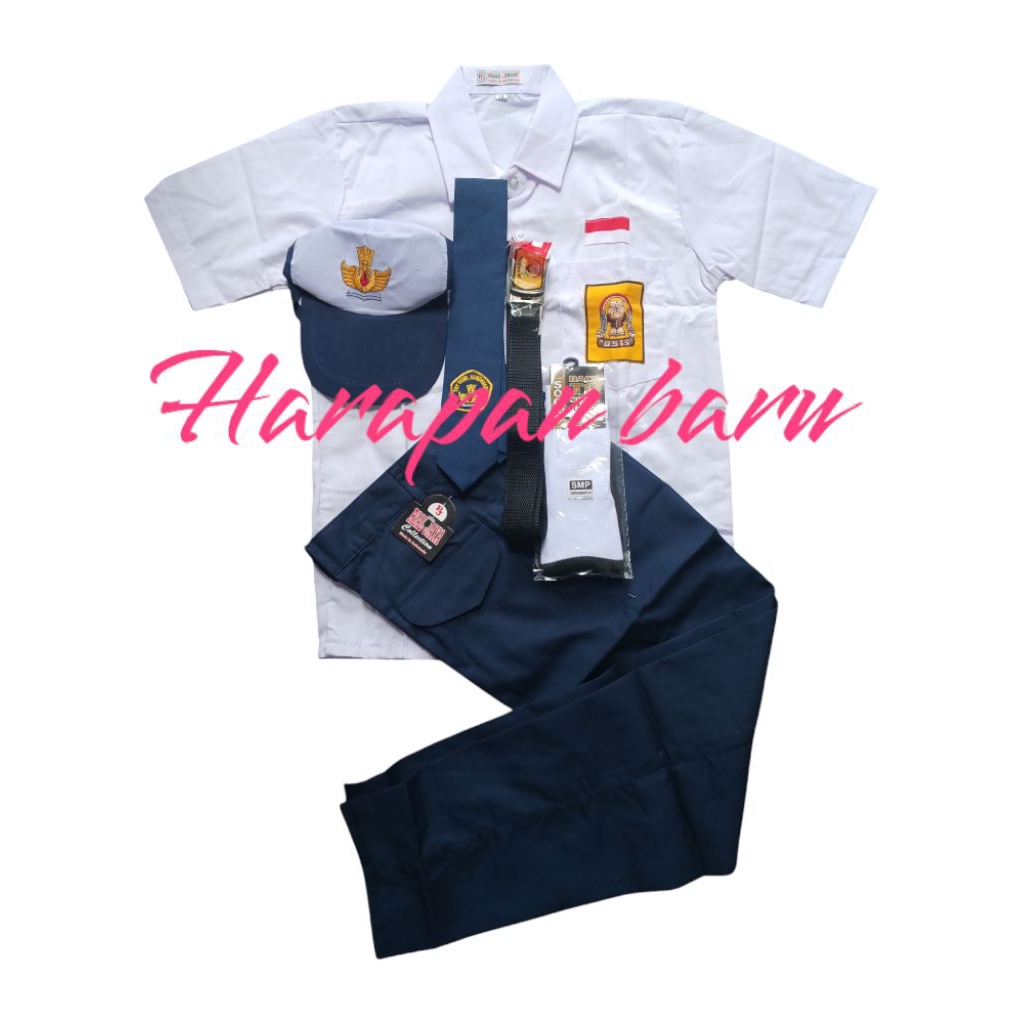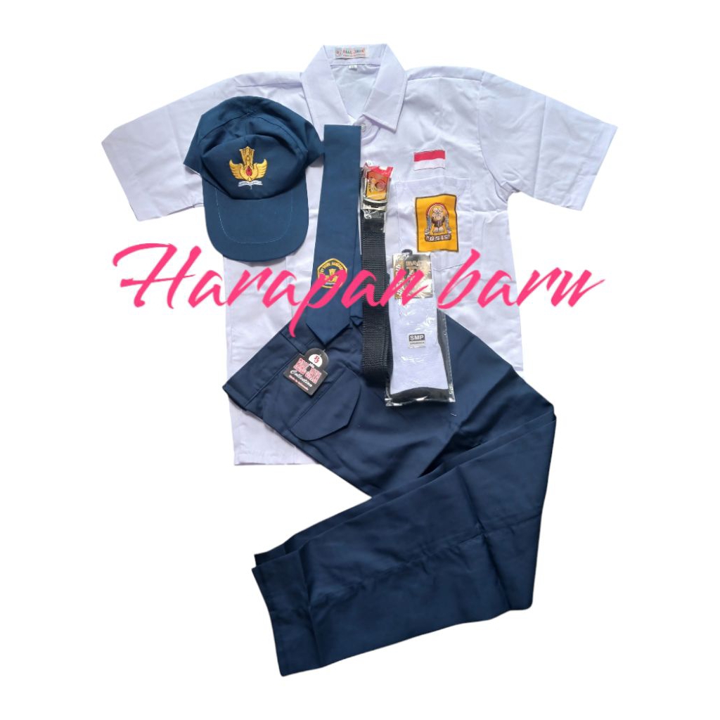 Setelan Seragam Sekolah SMP Biru Putih Laki BAJU PENDEK CELANA PANJANG SMP Laki