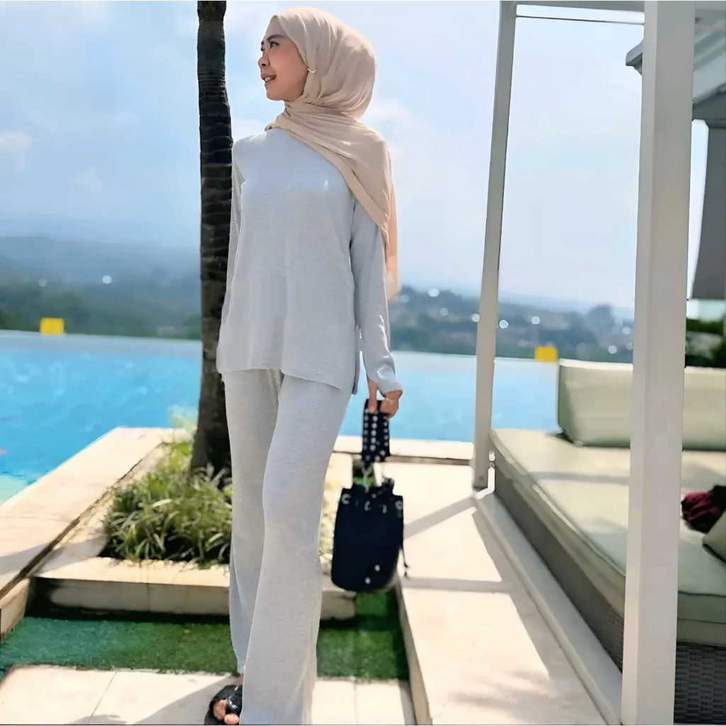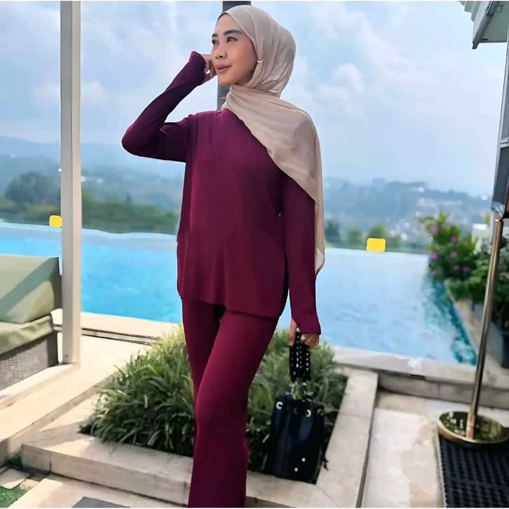 One Set Wanita PENE SET Setelan Rib Knitt Model Cutbray Terbaru Kekinian