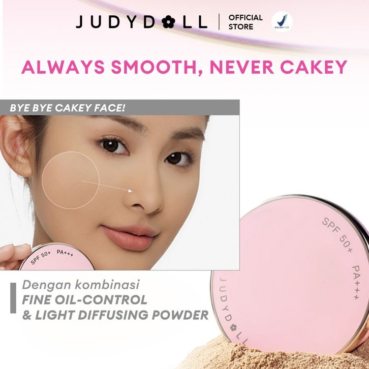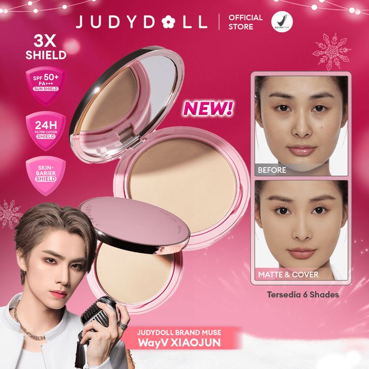 Bedak Padat Tahan Lama Menyamarkan Pori Judydoll Pink Shield SPF Two Way Cake 8.5g Hasil Matte & Blurring