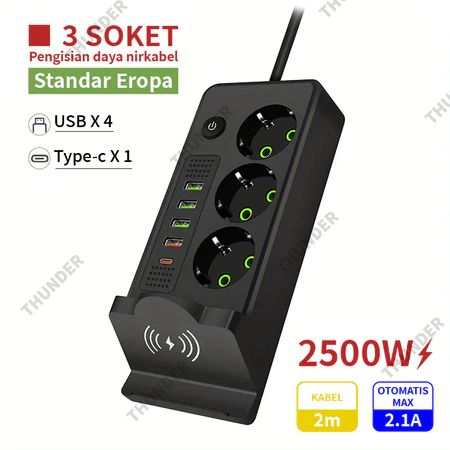【Thunder Mall】2500W Power Strip Power Socket Charger Stop Kontak Usb Charger 2M | Power Socket Elektrik 4*USB 3 Colokan