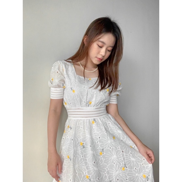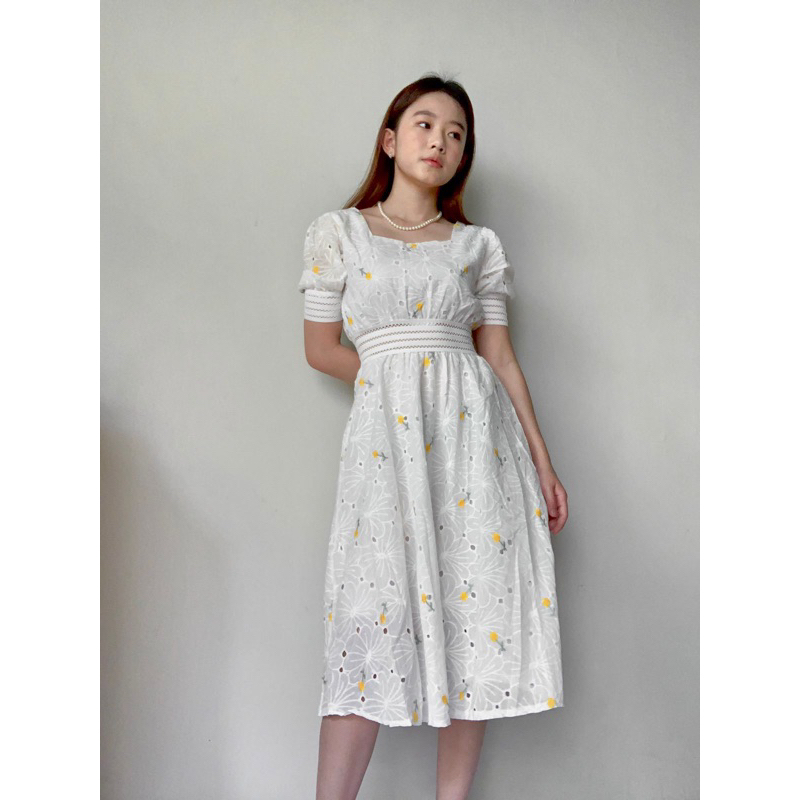 Alona Dress Korean STYLE Floral Vintage Midi White Dress | Midi Dress Pesta | Dress Vintage Wanita Kekinian