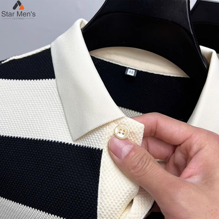 Kaos Pendek Pria Kaos Polo Shirt Half Sleeved Striped T-Shirt Men's Short Sleeved Embroidery Kaos Berkerah Pria Premium