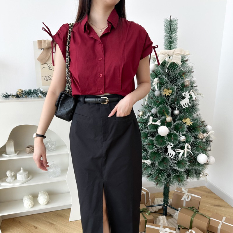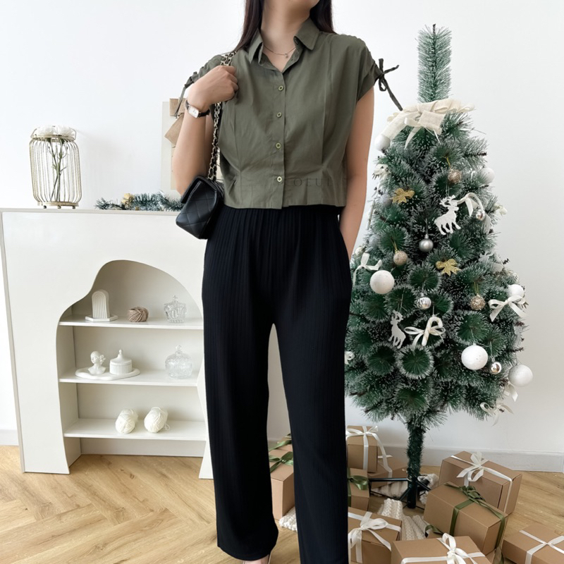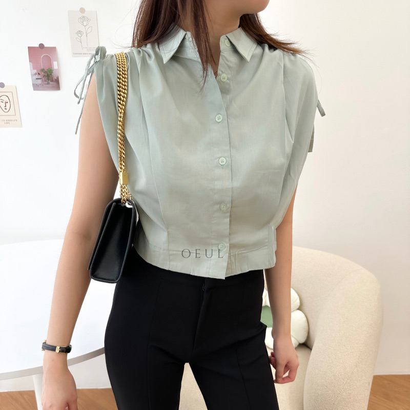 [OEUL] Hanni Drawstring Top | Atasan Serut Wanita | Kemeja Wanita | Blouse Wanita