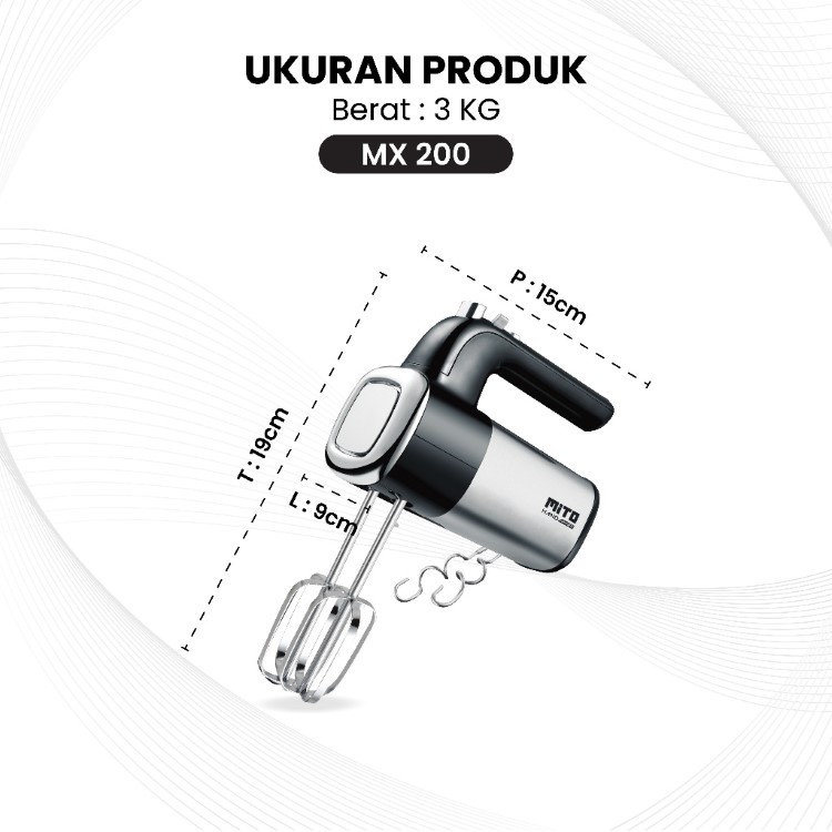Hand Mixer Mito Original Hand Mixer MX200 Pengaduk Adonan Kue Serbaguna 5 Kecepatan Turbo Low Watt High Quality Ber SNI