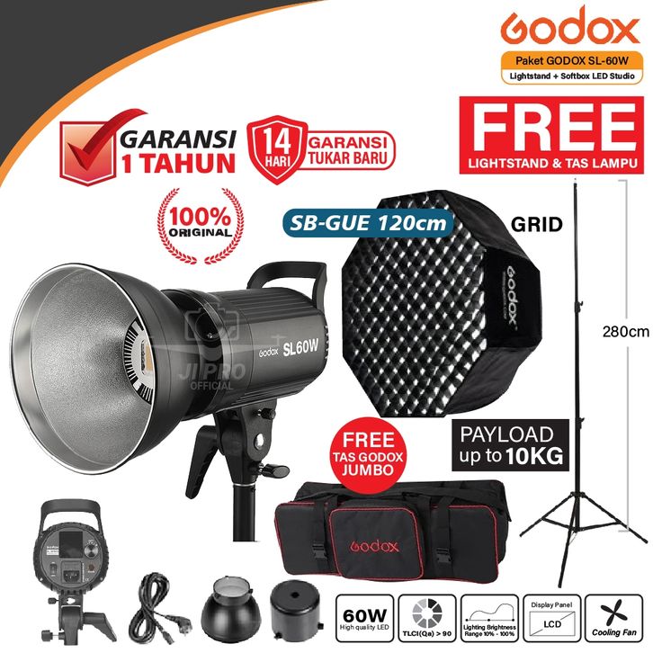TERLARIS !!! Paket GODOX SL-60W / SL60W / SL60 W - Lightstand + Softbox - LED Studio