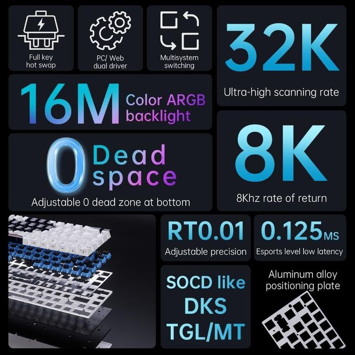 Ajazz ALUX68 Series Full Aluminium CNC Wired Mechanical Keyboard HE Magnetic R4p1d Trigger SOCD 8K