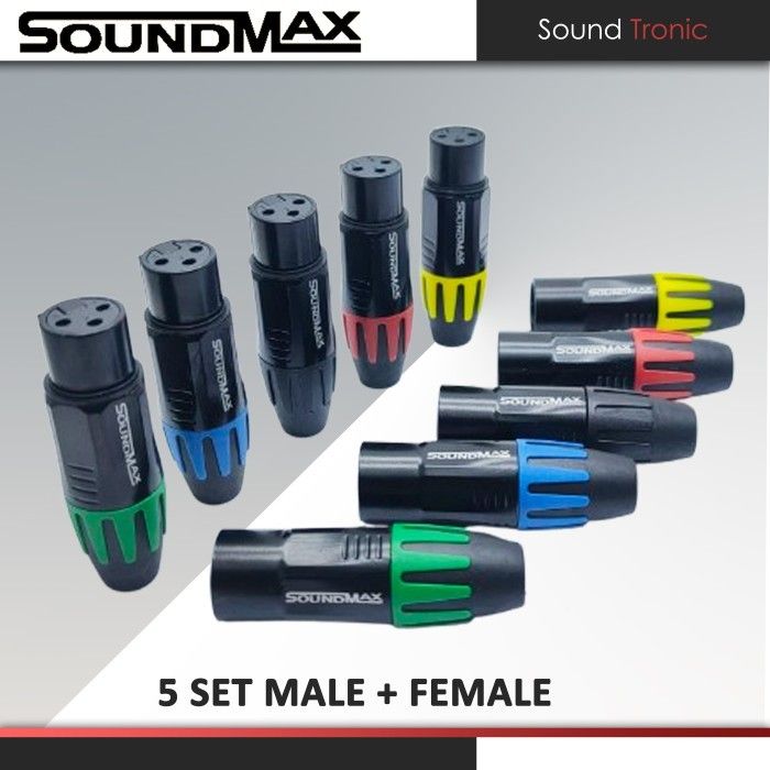 5SET Jack XLR Canon Male Female SM-MM3-BG SM-MF3-BG SOUNDMAX Jek Mic Black 5pasang