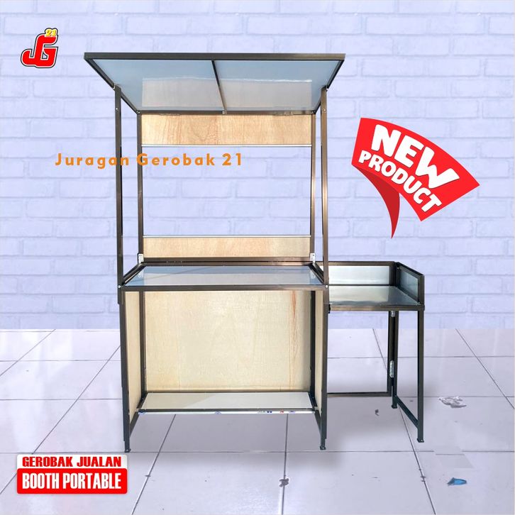 Booth Portable Meja Lipat Jualan Juragan Gerobak 21 el Rst ATAP Tamabahan Meja Kompor Tulang Hitam
