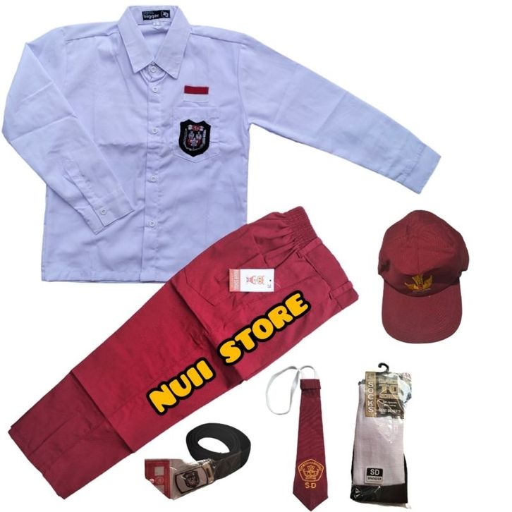 RK - Setelan Lengkap Seragam Sekolah SD Merah Putih Kelas 1-6 Lengan Panjang Anak Laki-laki