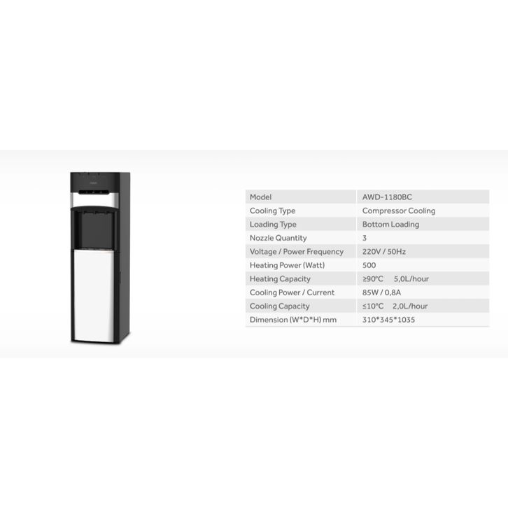AQUA AWD1180BC STANDING DISPENSER AIR GALON BAWAH KOMPRESOR AWD-1180BC