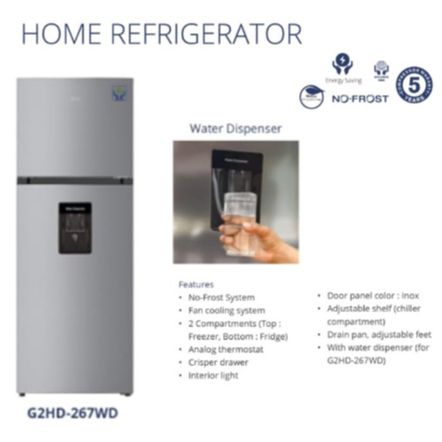 GEA G2HD267WD Kulkas 2 Pintu INOX 267L / Water Dispenser G2HD-267WD