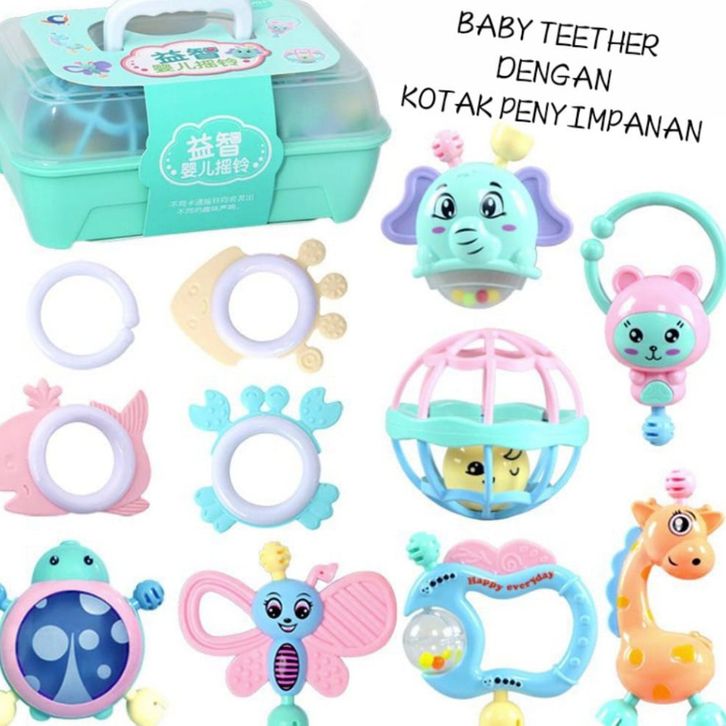 GROSIR MS 11pcs Mainan Babyset Shake Teether Kids Toys Perkembangan Anak Balita Rattle Gigitan Baby Gigitan Bayi