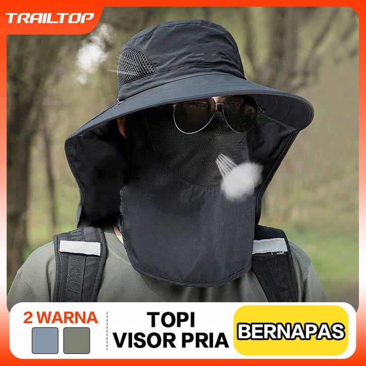 ORIGINAL TrailTop Topi Outdoor Lipat Pinggiran Lebar Anti UV Topi Mancing Gunung Bernapas Visor Pria Wanita obesb