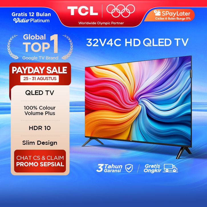TCL HD QLED Google TV 32 inch V4C - HDR 10 - Dolby Audio - Google Play/Netflix/Youtube/Disney+Hotstar - Smart Android 2