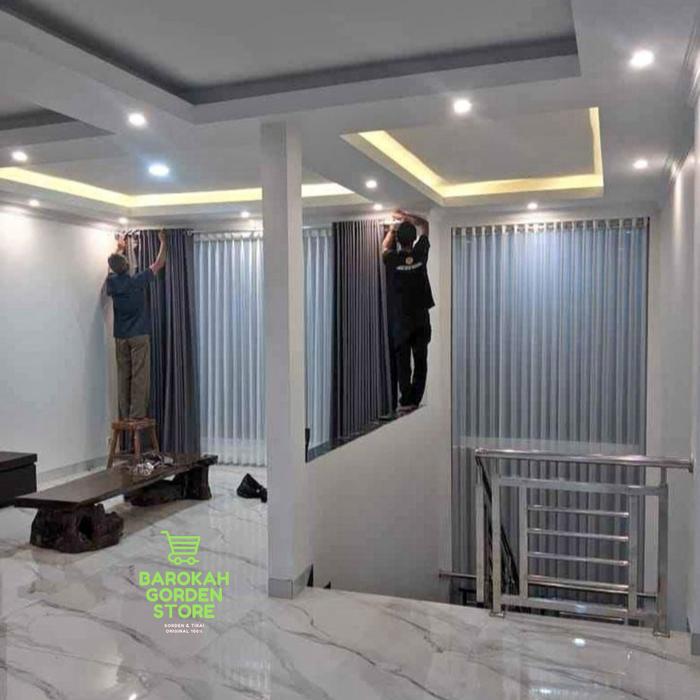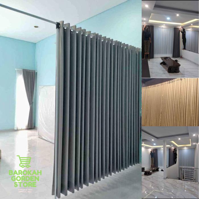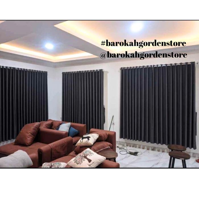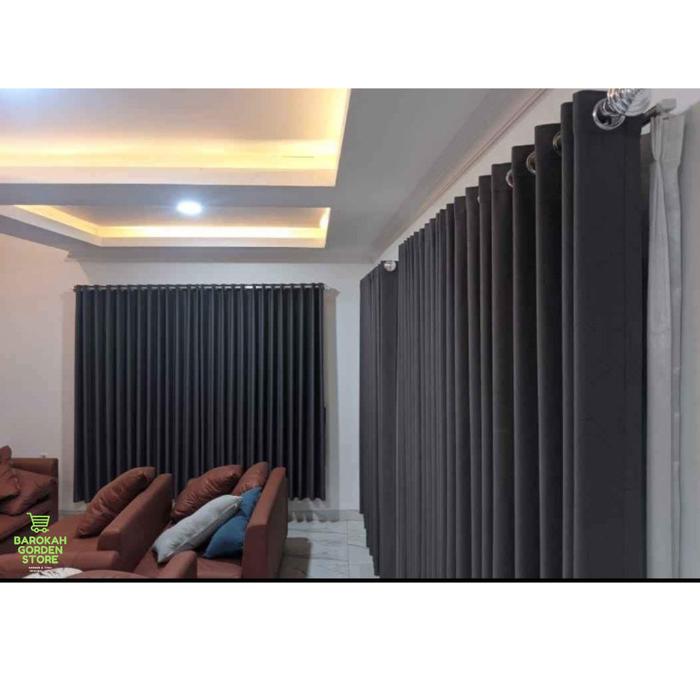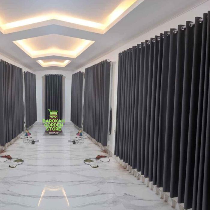 GORDEN SEKAT BUAT RUANG TAMU MOTIP POLOS EMBOSS KAIN BLACKOUT IMPORT PREMIUM MODEL SMOCKRING - ABU ABU, L 265 X T 150CM- 12 GELEMBUNG