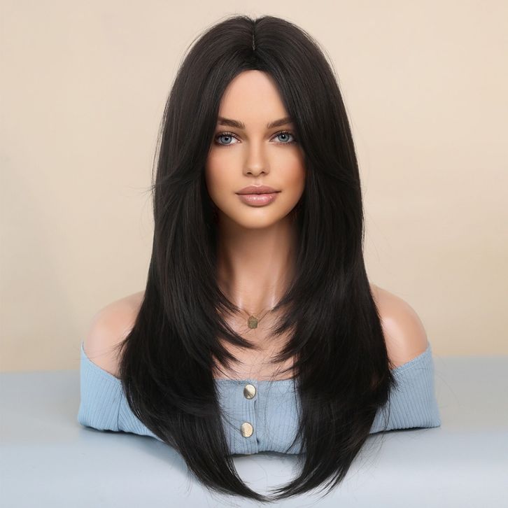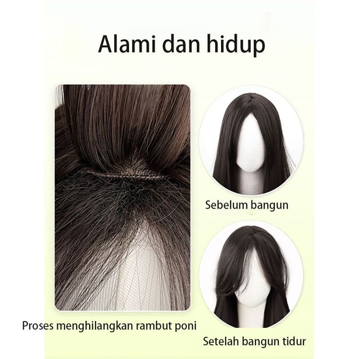 Wig penuh poni tirai berlapis gaya Korea 63 cm potongan kupu-kupu Wigs & Extensions