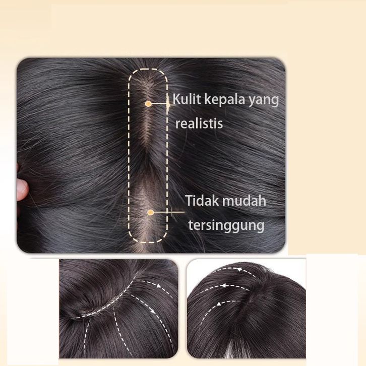 Wig wanita dengan poni belahan tengah, wig kepala penuh bergelombang hitam keriting panjang