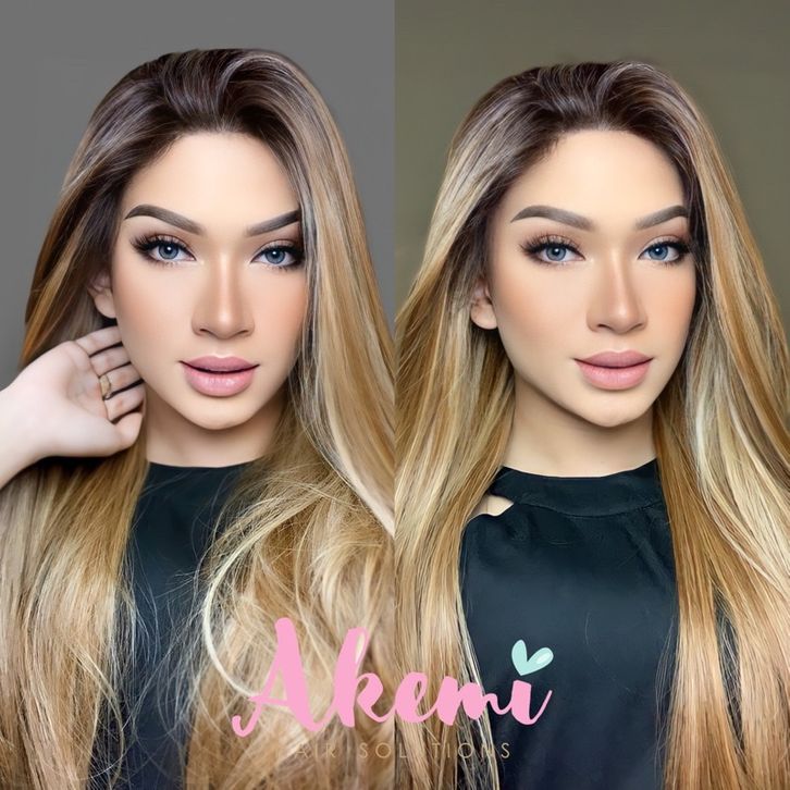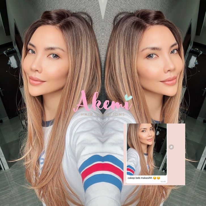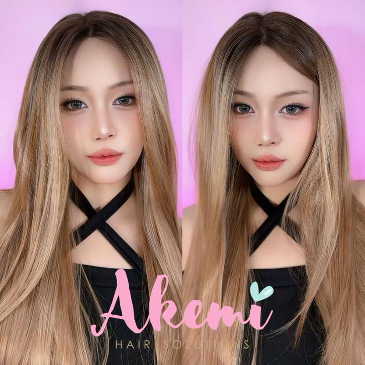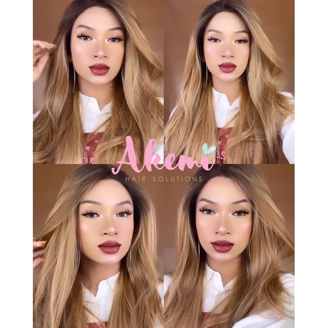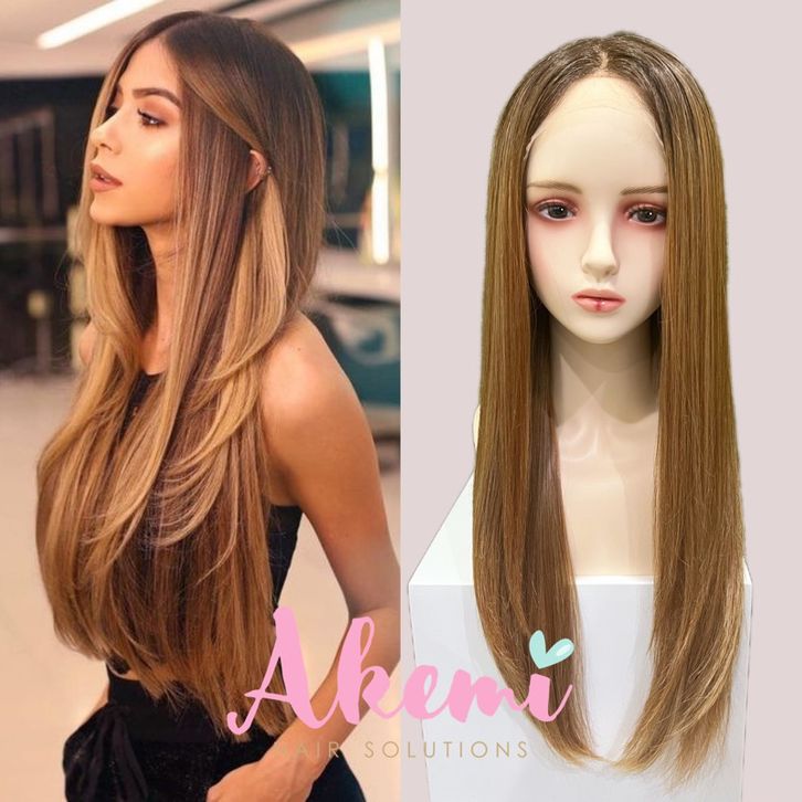 HALF LACE WIG AKEMI - Lurus 60cm OMBRE GOLDEN BROWN [ rambut palsu wanita natural panjang wig