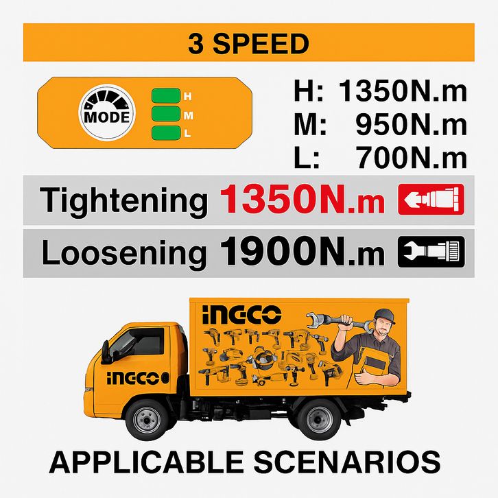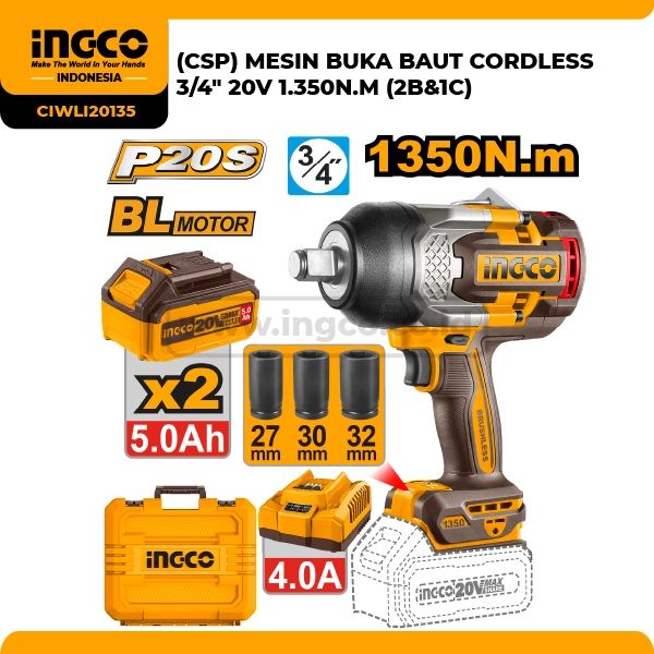 Cordless Impact Wrench 1350 N.m 3/4" Inch Brushless 20V INGCO CIWLI20135 Mesin Buka Baut 1350N.m P20S