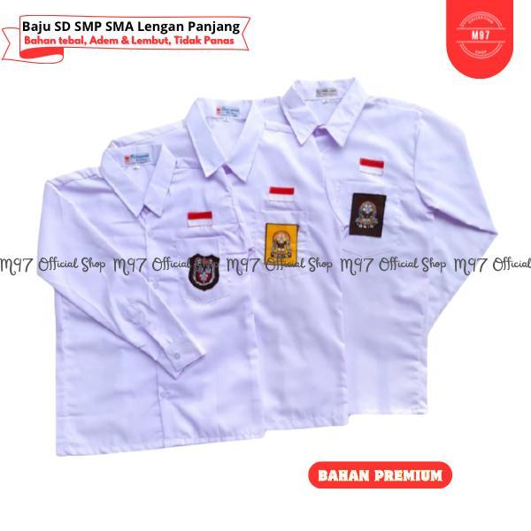 Kemeja Putih Lengan Panjang SD SMP SMA Baju Hem Seragam Sekolah SD SMP SMA Tebal Oxford Logo Bordir