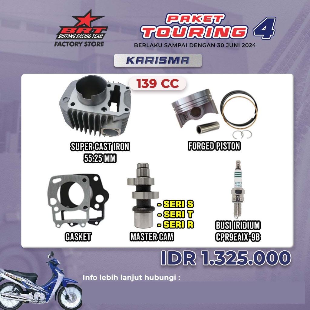 PAKET TOURING 4 KARISMA BORE UP 139 CC BRT - BLOK PISTON + MASTERCAM + BUSI IRIDIUM SUPER - BINTANG RACING TEAM