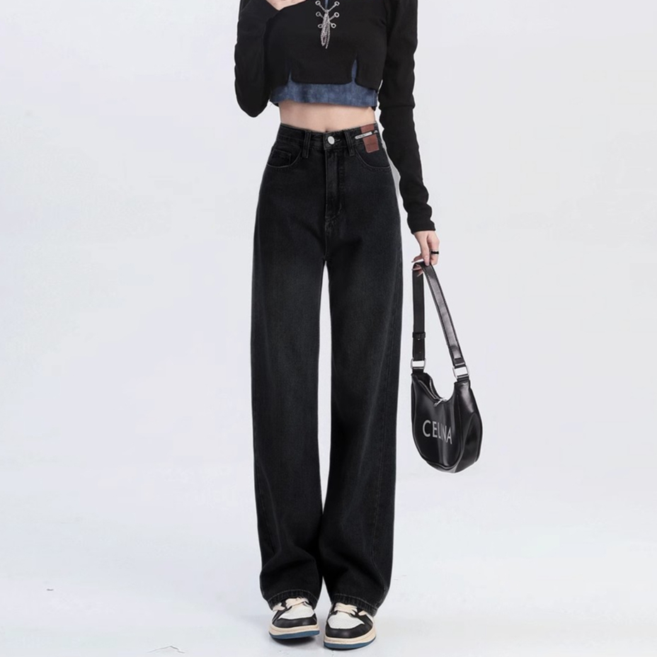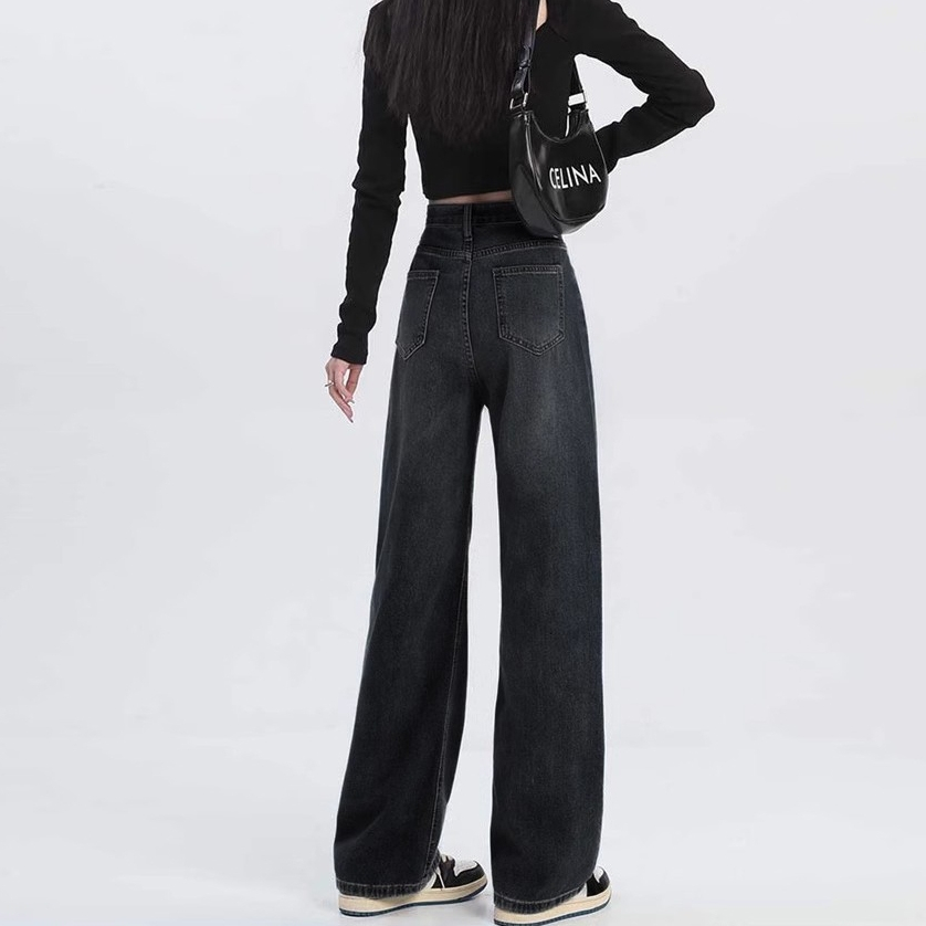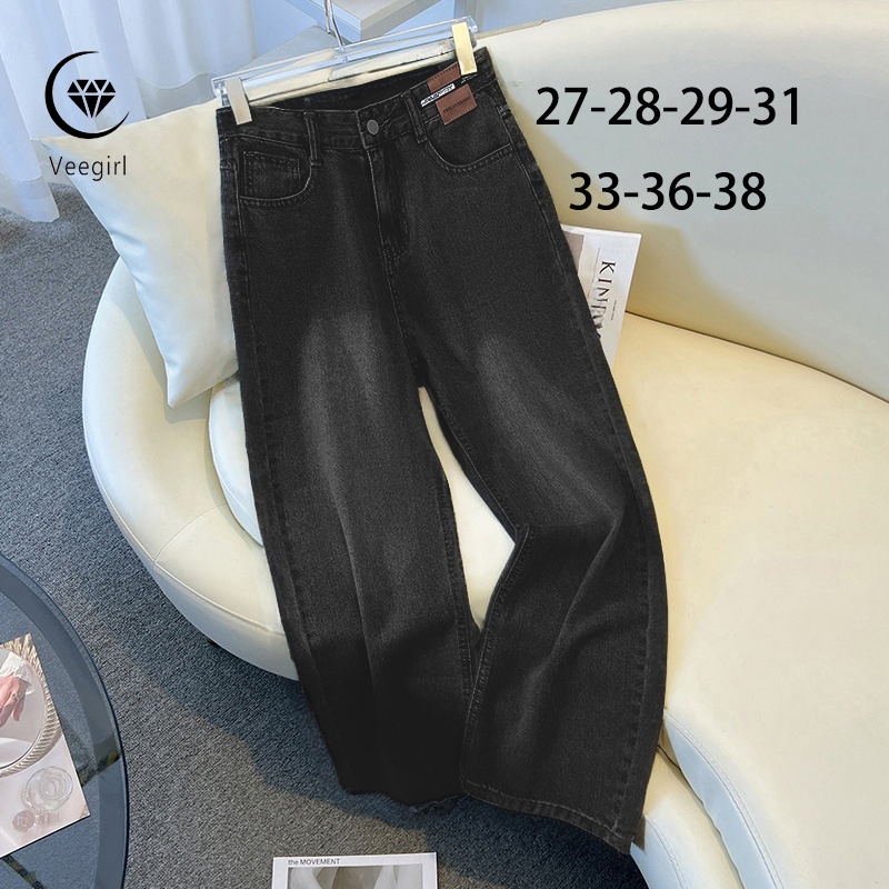 Veegirl Celana Jeans Loose Highwaist Jumbo Celana Korean Style Jeans Wanita Panjang Baggy Pants Casual Celana Jeans Abu Wanita Kekinian