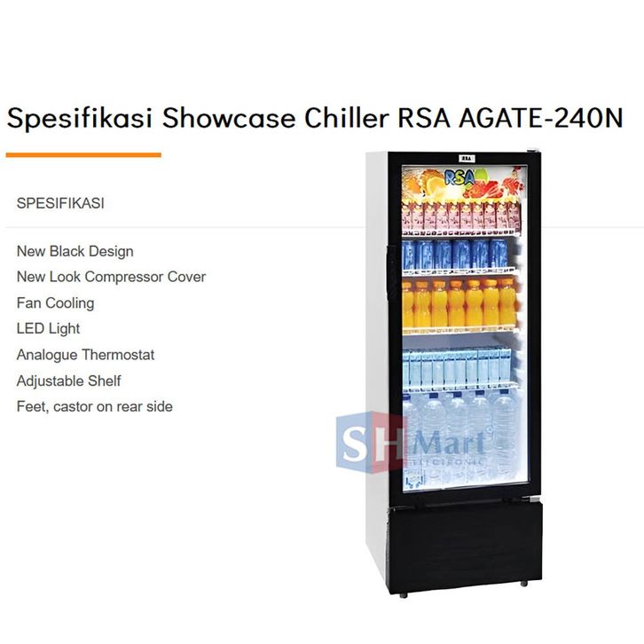 SHOWCASE RSA KAPASITAS 222 LITER AGATE240 4 RAK KULKAS PENDINGIN MINUMAN GARANSI RESMI