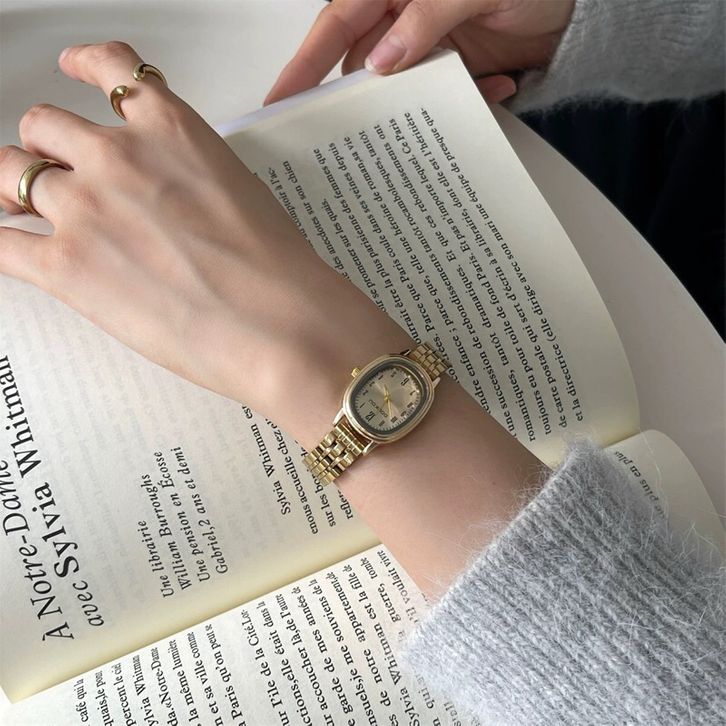 ONNIE Jam Tangan Wanita Doukou Oval Motif Angka Stainless Steel Anti Karat Retro Fashion Watch Jam tangan cantik (NOBOX)