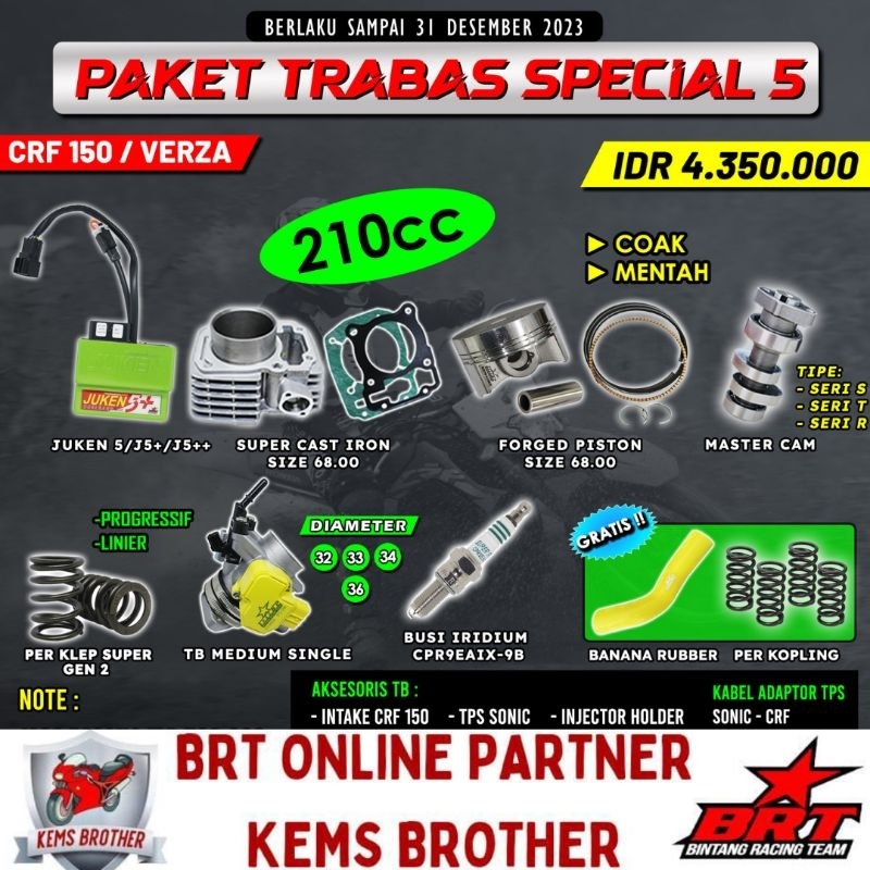 PAKET CRF BRT TRABAS SPESIAL 5 BOREUP 210CC