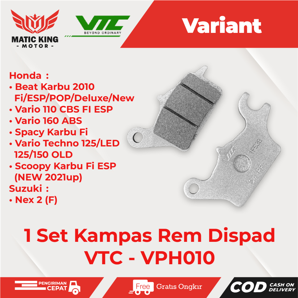 VTC Kampas Rem Dispad Discpad Depan Vario Beat Scoopy Spacy Nex 110 125 150 160 Karbu Fi eSP New ABS VPH010
