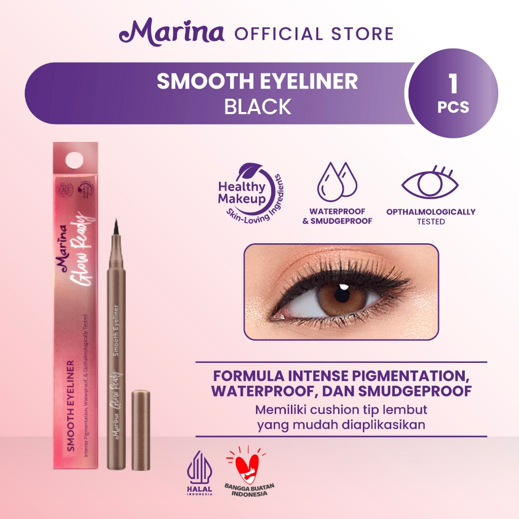 Marina Glow Ready Smooth Eyeliner Black - Eyeliner Waterproof Hitam