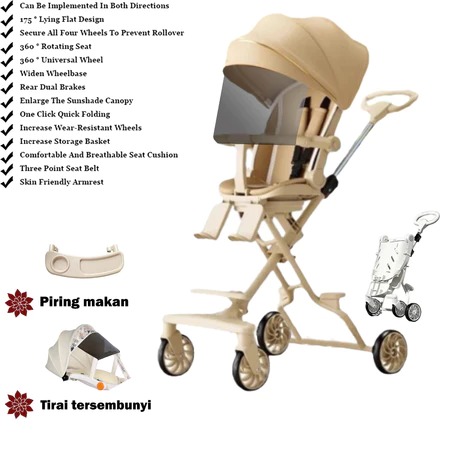 Stroller - Stroller Bayi Lipat Travelling Duduk Dan Berbaring Kereta Dorong Bayi kursi Dua Arah