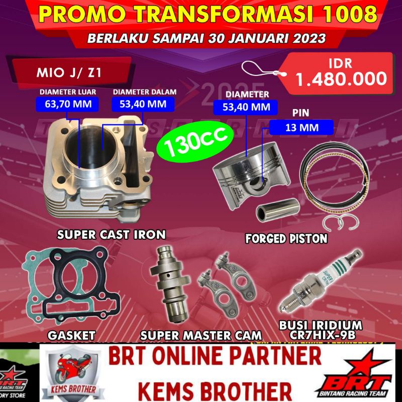 Paket Blok Casting Iron & Noken As Original BRT Bore Up 130cc & 150cc - Mio J, Soul GT, X-Ride, Fino