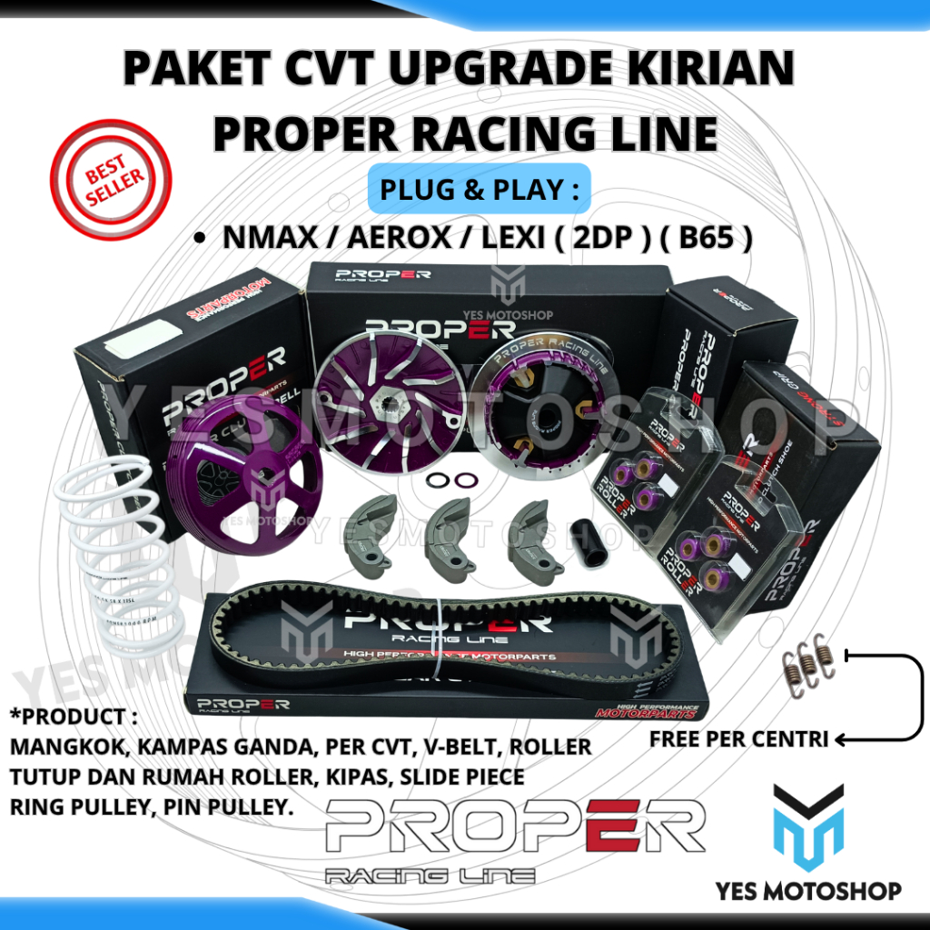 PAKET UPGRADE CVT PROPER RACING LINE NMAX AEROX LEXI PULLEY SET MANGKOK KAMPAS GANDA ROLLER PER CVT