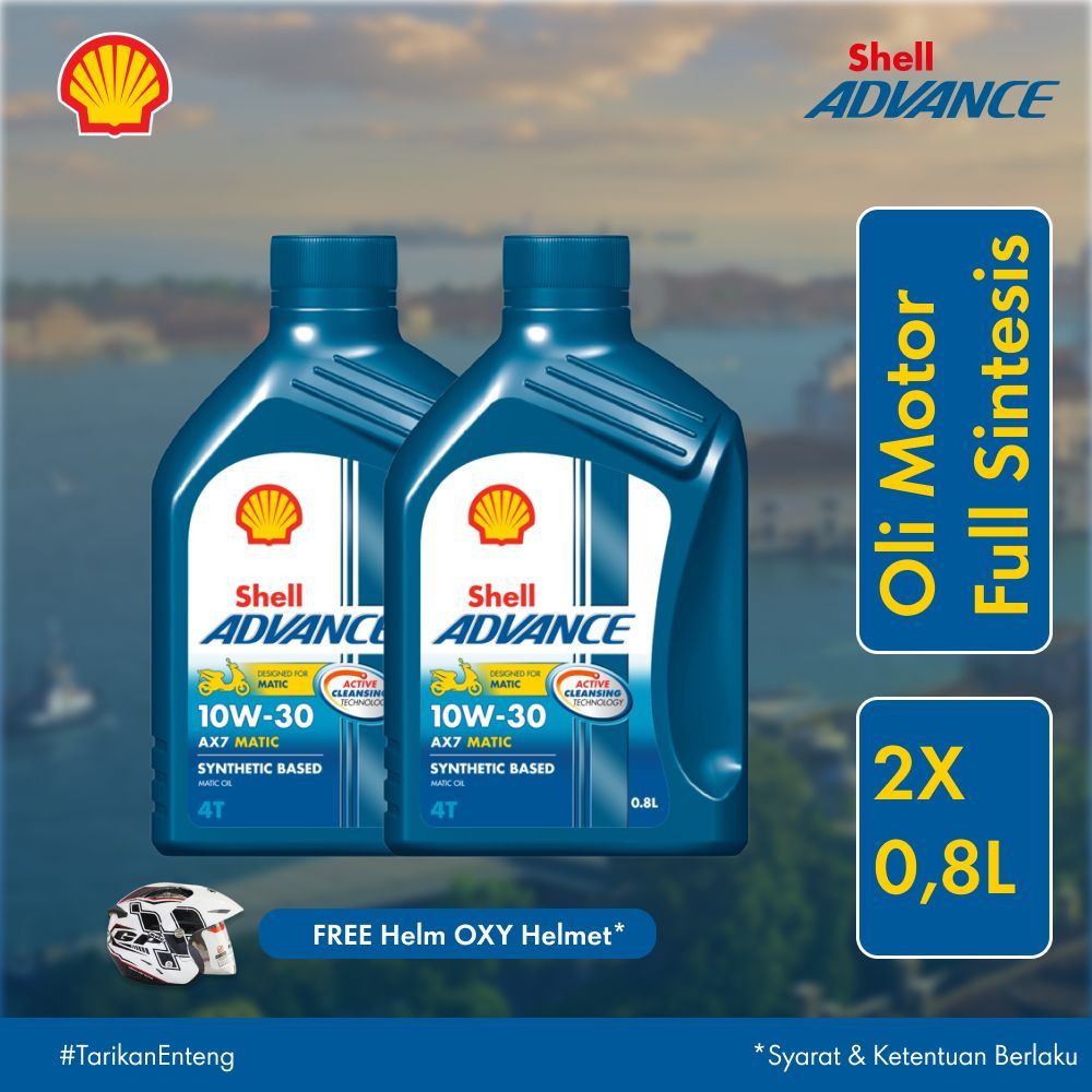 [FREE OXY Helmet] 2 x Oli Motor Shell Advance AX7 Scooter 10W-30 (0.8L)