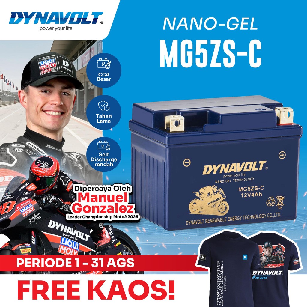 DYNAVOLT Aki Motor Honda Verza, Supra X 125, Vario 110, dll | Nano-Gel MG5ZS-C | 4 AH 140 CCA