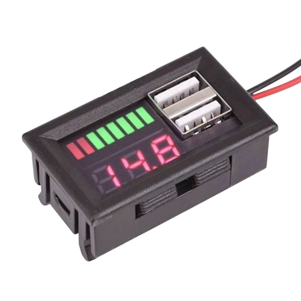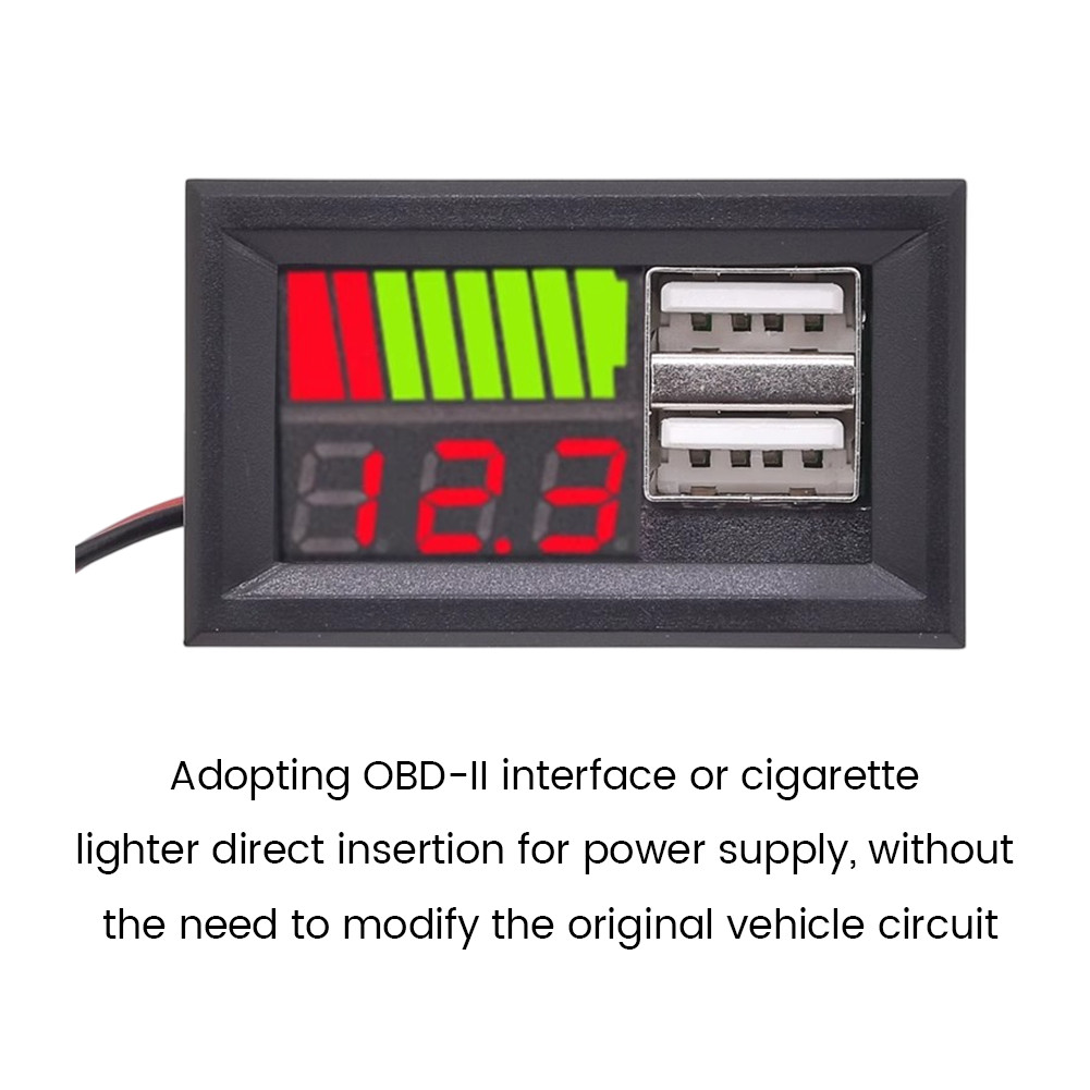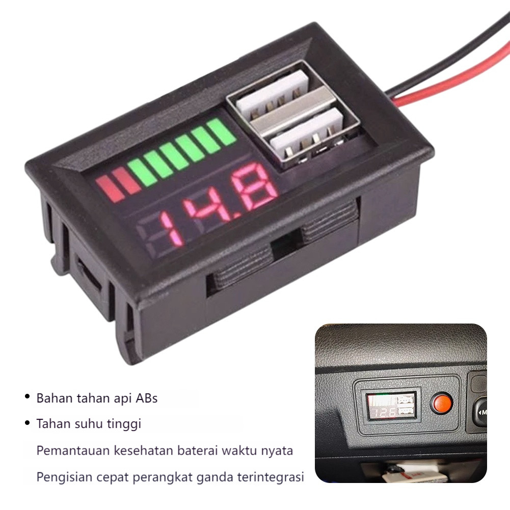 [] Volt Meter Tampilan 12V Indikator Level Baterai Aki Accu iOS Connector 2 USB 5V2A