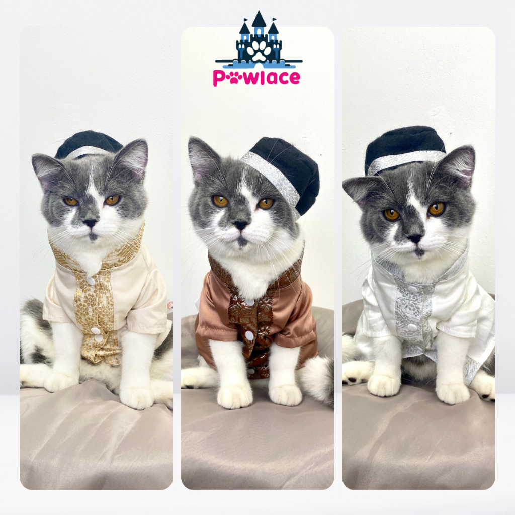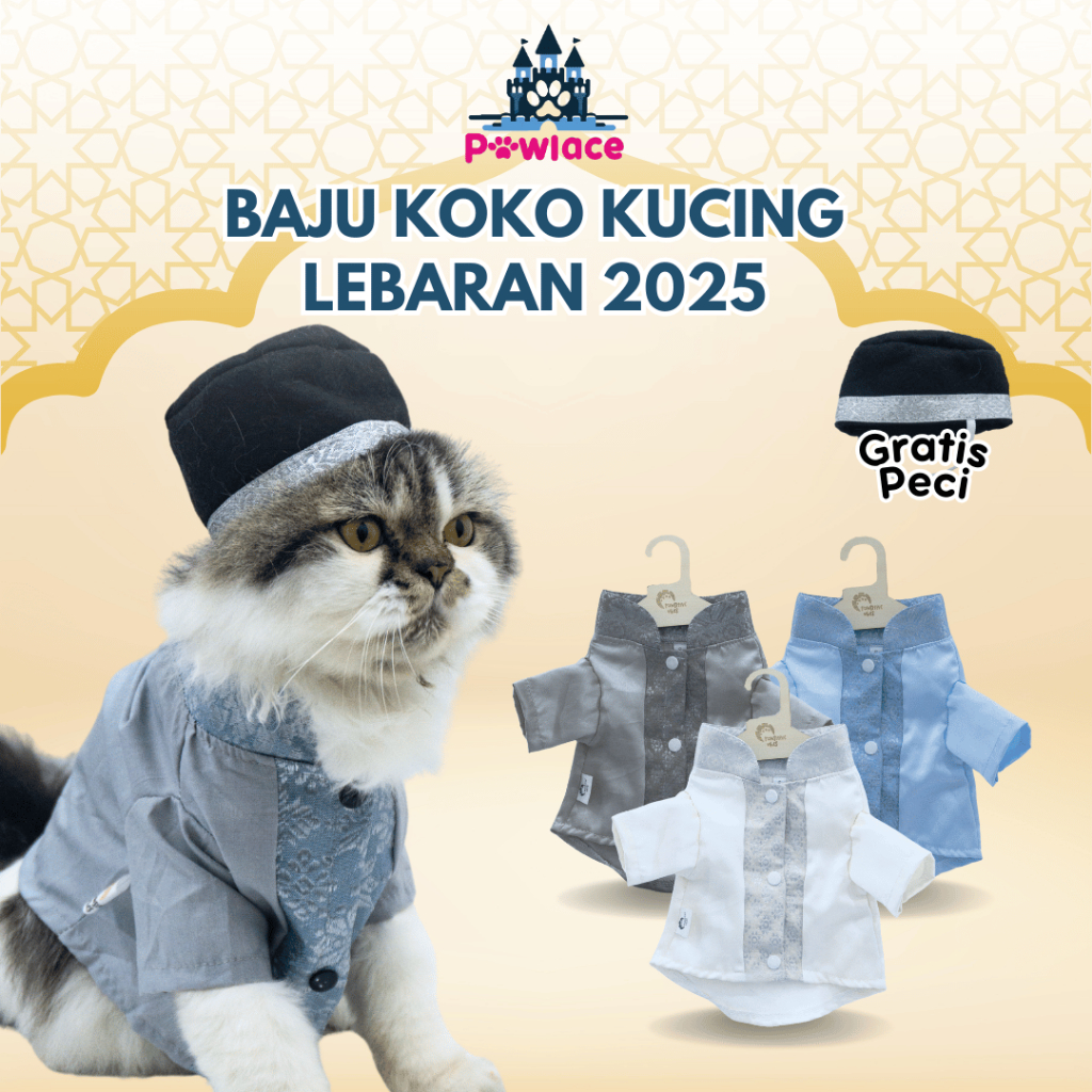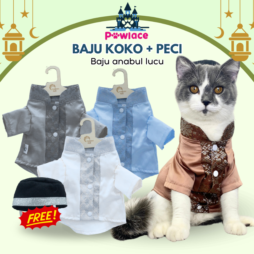 Koko Kucing Spesial Edisi Lebaran - Baju Muslim Set Koko Dengan Topi Lucu Murah - Pet Shirt - Baju Koko Kucing Bahan Kat